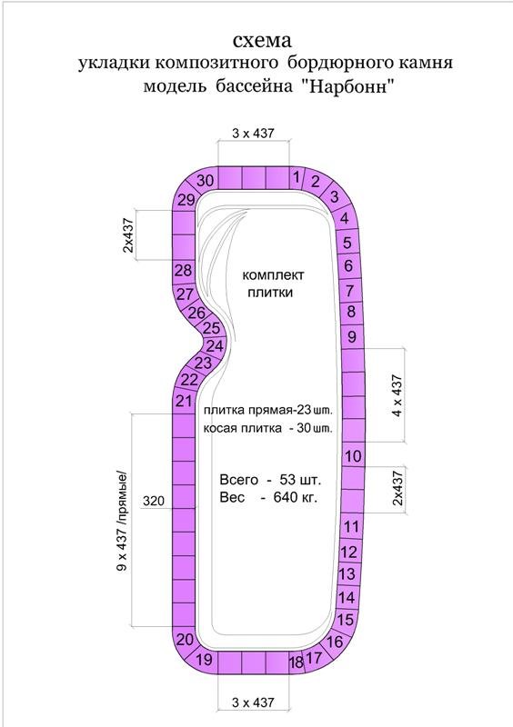 Нарбонн – это бассейн, сочетающий в себе олимпийские стандарты плавания, роскошные условия для отдыха и уникальные условия интеграции в ландшафт. Четкие геометрические формы с мягкими скруглениями создают элегантный современный силуэт. А специальная выемка вдоль борта – возможность для декоративных посадок (карликовый можжевельник, самшит, лаванда) или каскадного водопада.